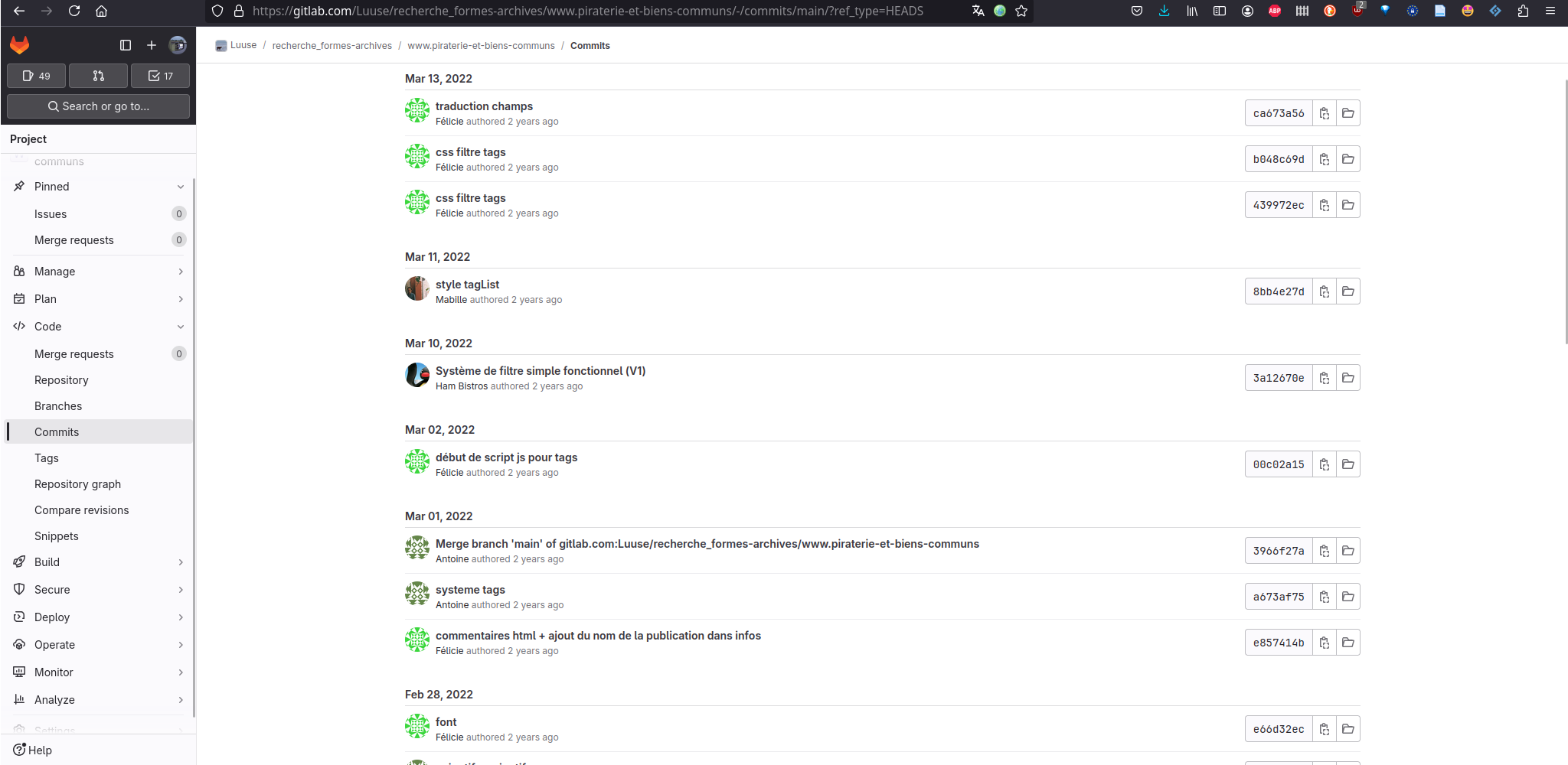 Membres actuel·les : Antoine Gelgon, Leonard Mabille, Romain Marula, Étienne Ozeray, Natalia Pageau, Baptiste Tosi